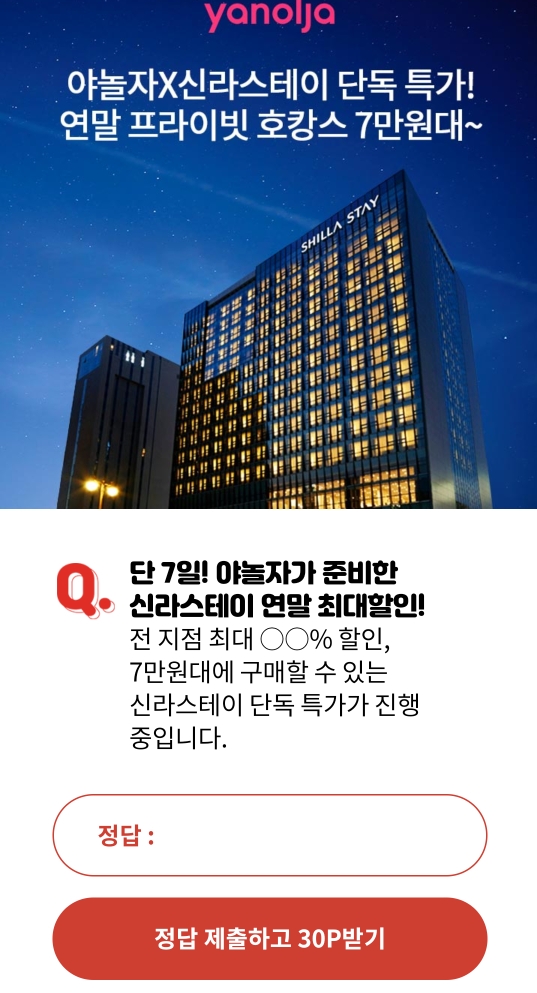 야놀자신라스테이단독특가 오퀴즈 7시 8시 9시 10시 11시 정답